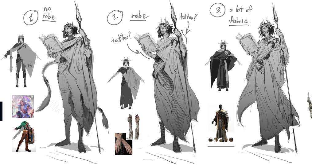 You will get several options of outfit and other details if they are requested. You choose one you prefer the most, maybe add or remove some details and after that I make a color sketch.